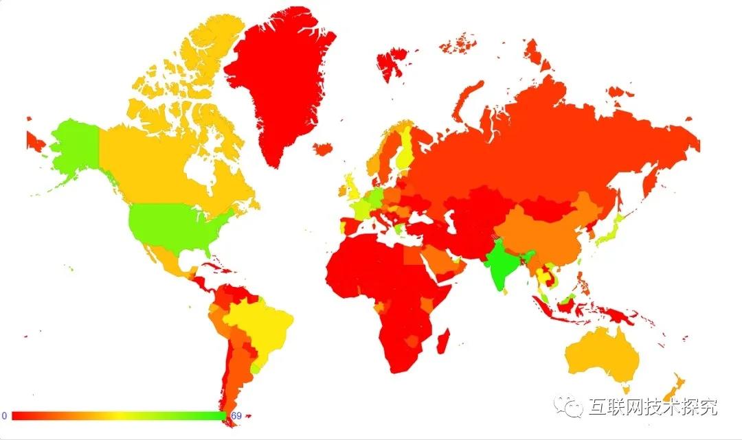 圖2 APNIC全球各國IPv6部署程度(2020年7月)