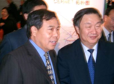 (圖為信產(chǎn)部部長(zhǎng)王旭東在教育部科技發(fā)展中心主任李志民陪同下參觀CERNET展示區(qū)) ![]() |