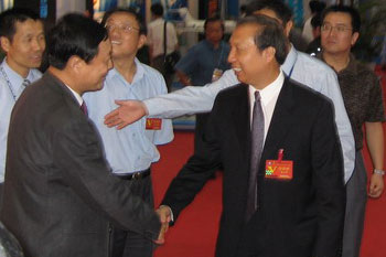 CERNET專家委員會主任吳建平教授與廣東省教育廳副廳長羅遠芳在CERNET展位 |