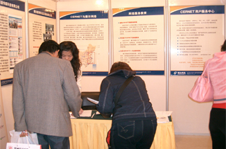 2006年11月19日, CERNET第十三屆學術年會在云南省昆明市的云安會都召開。賽爾網絡有限公司參加了此次年會的展覽,并為年會會場提供Native IPv6 ,IPv4的無線上網服務,無線語音服務。無線信號覆蓋大會主會場、分會場及部分展區。公司為了方便參會的老師上網接收郵件,除了在一層大廳設立了公司介紹展區,特在大會現場的二層六號會議室設立了無線上網體驗區。一早上就有近三百位的老師參觀了體驗區里的公司業務介紹展覽并親身體驗了Native IPv6無線上網。體驗區里設有CERNET用戶服務中心,8位來自客服呼叫中心、計費中心、NOC、NIC、CCERT、CER-SERV的同事還為老師們提供了現場的業務咨詢,并進行了客戶滿意度調查。
