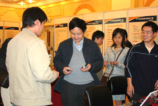 2006年11月20日,今天是CERNET第十三屆學術年會召開的第二天。參加開幕式的老師在會議間歇之余來到賽爾網絡無線體驗區,觀看了公司業務介紹展覽,并興致勃勃的體驗了無線上網。在CERNET用戶服務中心,老師們愉悅的做了客戶調查,并咨詢了公司相關的業務。