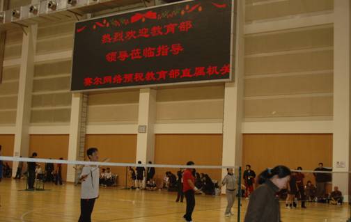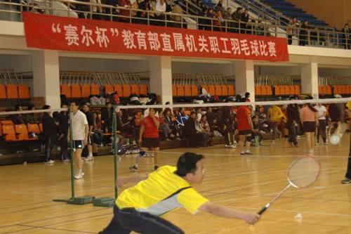 由教育部直屬機(jī)關(guān)工會主辦、教育部科技發(fā)展中心承辦、賽爾網(wǎng)絡(luò)有限公司協(xié)辦的“2007年‘賽爾杯’教育部直屬機(jī)關(guān)職工羽毛球比賽”于11月14日在北京郵電大學(xué)羽毛球館正式開球比賽。來自教育部機(jī)關(guān)、直屬單位的31個代表隊,以及20多位司局長參加比賽。本屆比賽持續(xù)三天,將在16日進(jìn)行決賽與頒獎。