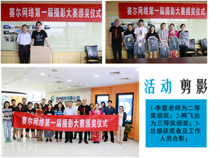 2016年7月22日,賽爾網(wǎng)絡(luò)第一屆攝影大賽頒獎(jiǎng)儀式在公司總部16-1會(huì)議室舉行,總經(jīng)理辦公室主任李靜主持頒獎(jiǎng)儀式,公司副總經(jīng)理李星老師、賽爾新技術(shù)熊飛總作為本次攝影大賽的評(píng)委應(yīng)邀出席頒獎(jiǎng)儀式并為獲獎(jiǎng)?wù)哳C獎(jiǎng)。總部獲獎(jiǎng)?wù)呒皵z影大賽相關(guān)工作人員參加了頒獎(jiǎng)儀式。