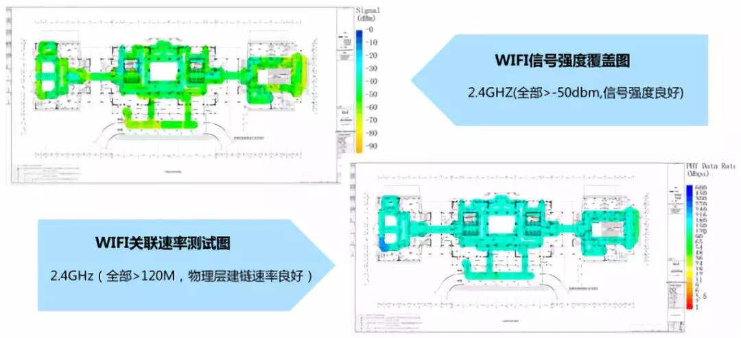 圖4:一期建設(shè)后項目成果--復(fù)旦光華樓無線測試結(jié)果(2.4GHz,圖為某層示例)