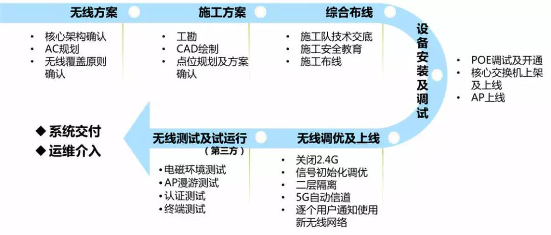 為此,賽爾網(wǎng)絡(luò)成立了項目實施領(lǐng)導(dǎo)小組,建立了完善的項目組織架構(gòu),堅持以科學(xué)管理為指導(dǎo),制定最優(yōu)的項目流程,積極與用戶、廠商協(xié)調(diào)溝通,細化項目實施步驟/周期,反復(fù)確認無線覆蓋原則,為項目的順利完成奠定堅實基礎(chǔ)。一是成立專家顧問組,保障項目技術(shù)方案和實施方案的科學(xué)合理性,確保項目的質(zhì)量;二是注重與用戶、廠商間的溝通,及時解決建設(shè)過程中遇到的各類問題,保證用戶利益;三是有效協(xié)調(diào)公司內(nèi)部各方面資源,確保項目資金、設(shè)備采購等商務(wù)環(huán)節(jié)及時到位;四是分組實施,責(zé)任到位;五是注意項目設(shè)計文件、技術(shù)文件、日常管理文件、用戶手冊的整理和歸檔。