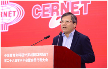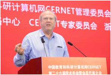 今年適逢互聯網誕生50年,中國全功能接入互聯網25周年,也是CERNET建設25周年。教育部科技司司長雷朝滋發表了主旨演講。他首先轉達了教育部副部長鐘登華對大會的祝賀,并對國家網信事業與教育信息化發展做了系統總結與分析,對CERNET未來發展提出了具體要求。雷朝滋司長最后表示,25年來,CERNET從無到有,從小到大,為我國網信事業與教育信息化事業做出了突出的貢獻,向25年來CERNET的新老建設者表示感謝和祝賀。