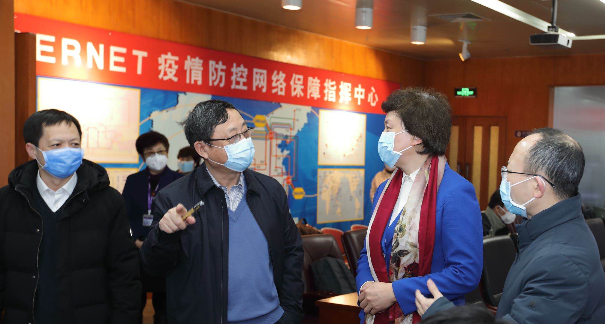 在中國教育和科研計算機網(wǎng)CERNET疫情防控網(wǎng)絡(luò)保障指揮中心,陳旭聽取了CERNET網(wǎng)絡(luò)中心主任、清華大學網(wǎng)絡(luò)研究院院長吳建平院士關(guān)于清華大學牽頭建設(shè)和運行管理的CERNET網(wǎng)絡(luò)中心為全國教育系統(tǒng)的疫情防控工作提供高速、穩(wěn)定、安全、可靠的網(wǎng)絡(luò)服務(wù)和教學科研信息化保障情況。