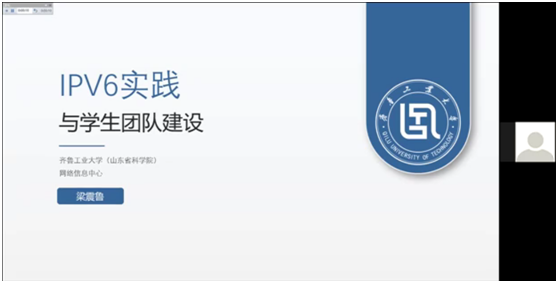 齊魯工業大學網絡信息中心副主任梁震魯,對科教融合背景下校園網絡建設,網絡信息中心重新定位和團隊建設,校園IPv6建設現狀,學生團隊參與IPv6的情況等進行了闡述,并介紹了學校網站群建設和IPv6網絡安全研究等相關工作。
