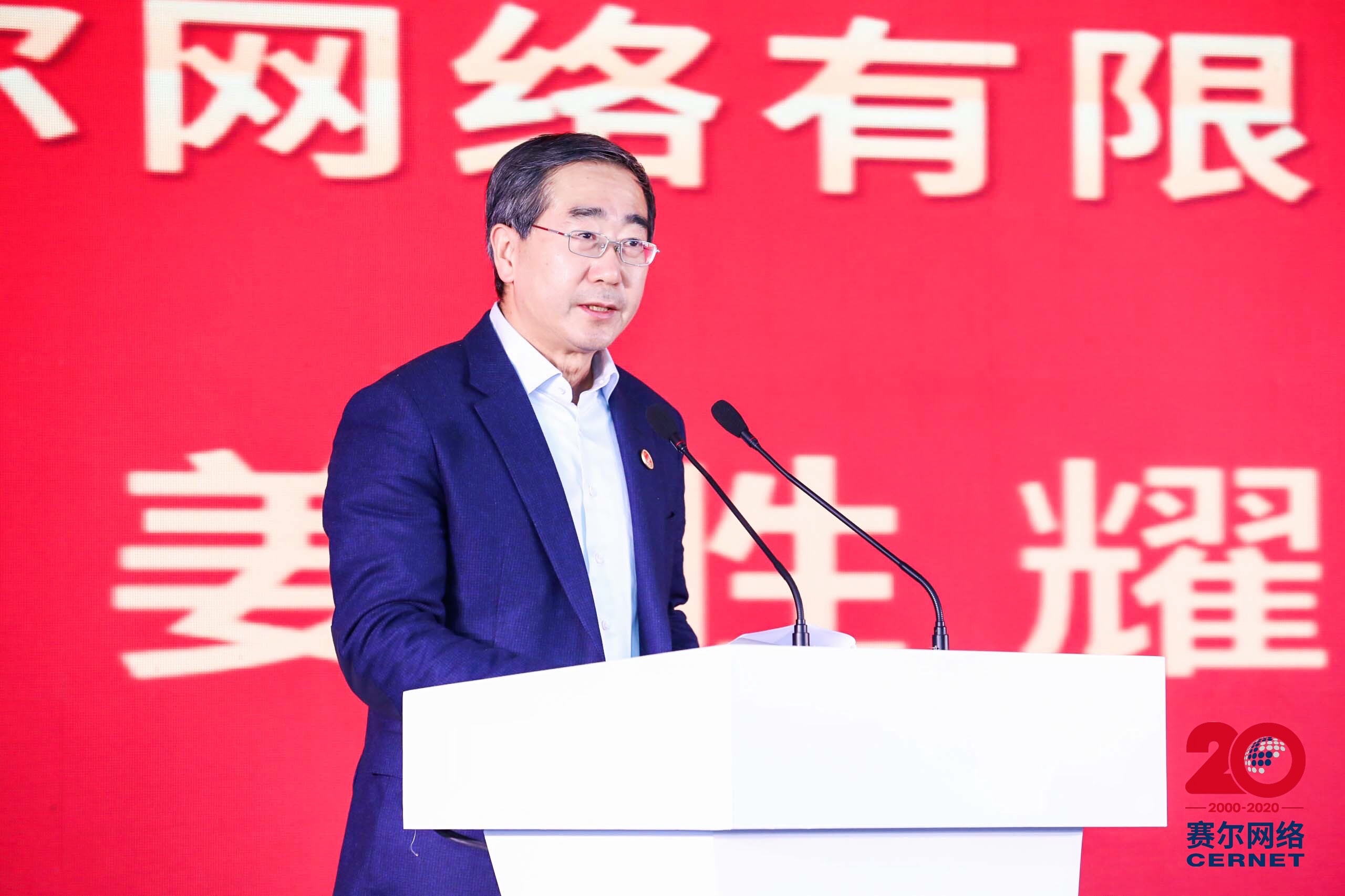 他表示,過去的20年,是不忘初心的20年,是艱苦創業的20年,是創新發展的20年。20年來,在教育部和國家相關部門的領導和支持下,在公司董事會的正確領導下,在各高校和兄弟單位的大力支持下,在全體賽爾人的共同努力下,圓滿完成了教育部的重托。他表示,在二十年穩步發展的基礎上,在教育部和新一屆CERNET管委會的領導下,未來全體賽爾人將繼續踐行“修己奉獻 敬事創新”的核心價值觀,拼搏奉獻,開拓創新,為進一步推動下一代互聯網關鍵核心技術突破,建設教育強國、網絡強國,實現中華民族偉大復興的中國夢做出新的更大貢獻。