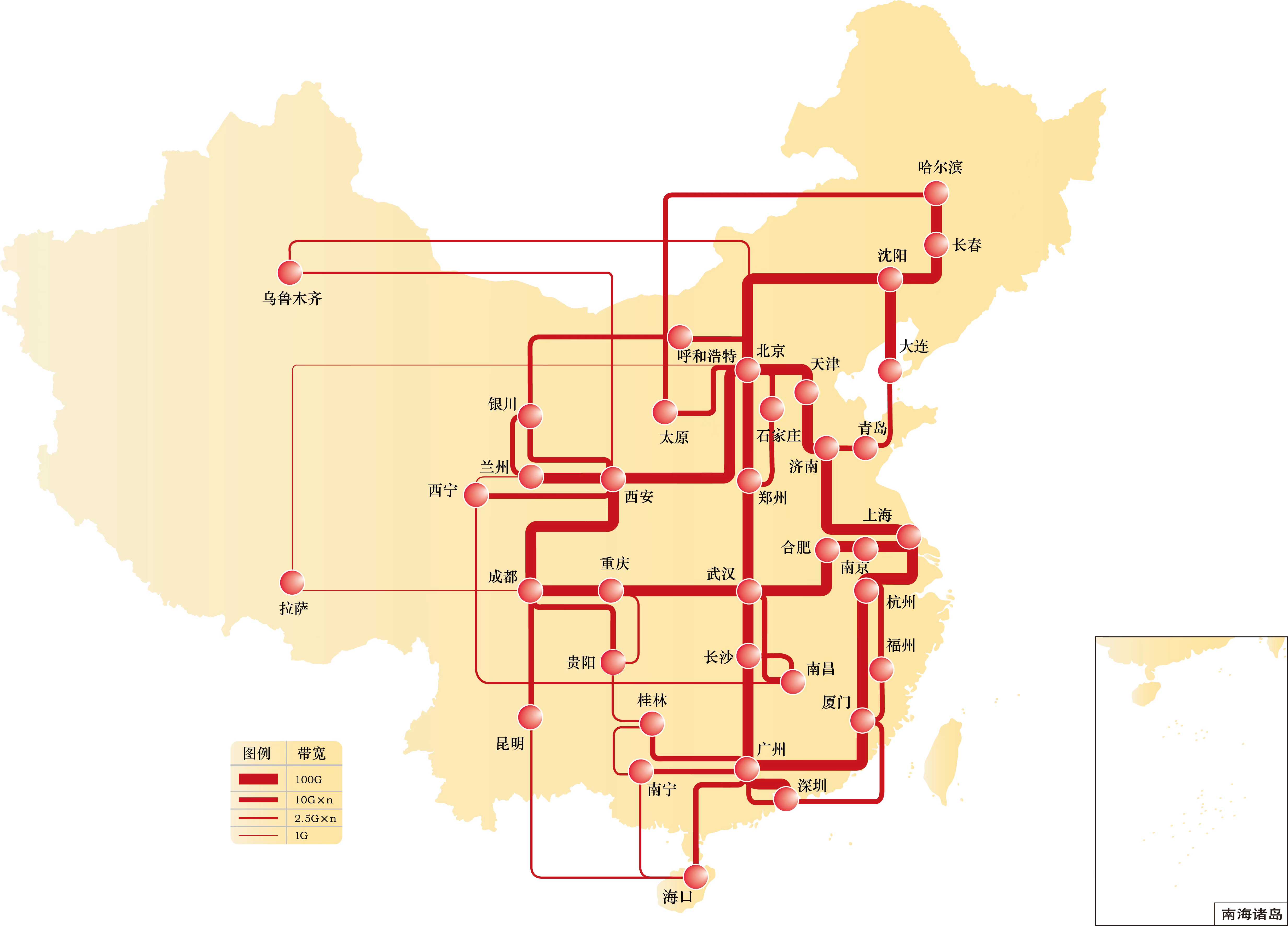 為有效應對疫情期間校園網帶寬激增的挑戰,確保CERNET主干網和地區節點的穩定安全運行,進一步保障廣大高校用戶的基本用網需求,近日,CERNET和賽爾公司開通了大連-青島、桂林-貴陽兩條100G備份線路,同時也實現了濟南-青島主干100G升級,以及貴陽、桂林、南寧主干100G升級,筑牢了東北和西南兩大區域的通信防線。