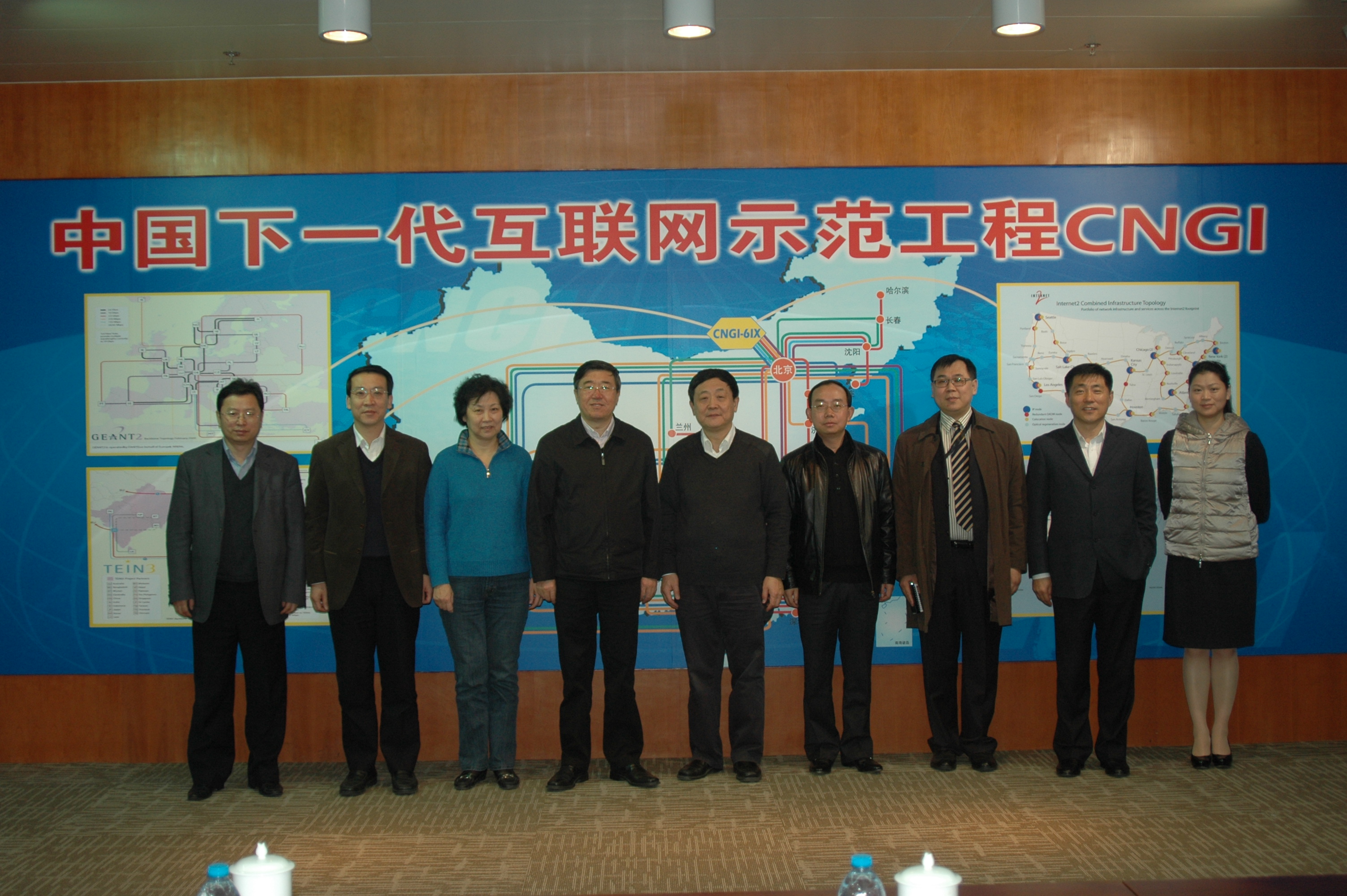 2011年11月23日,北京市海淀區(qū)政府隋振江區(qū)長、孟景偉副區(qū)長一行到賽爾網(wǎng)絡(luò)有限公司參觀視察。區(qū)領(lǐng)導(dǎo)在清華大學信息網(wǎng)絡(luò)工程研究中心的中國下一代互聯(lián)網(wǎng)